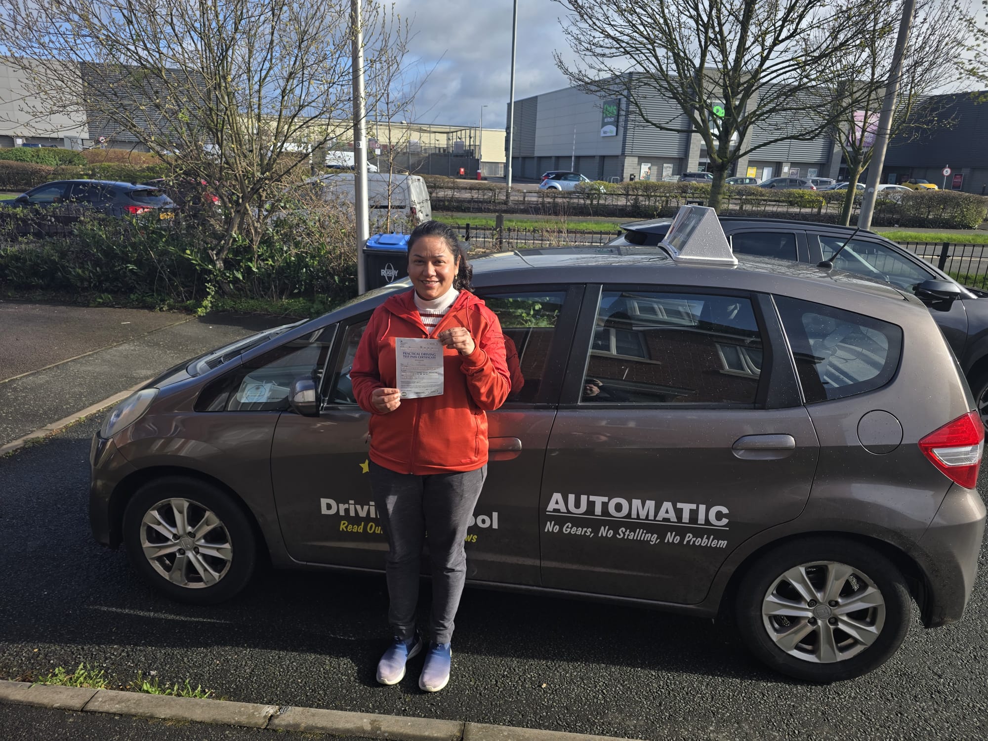 Sharon passed her driving test in Rugby for the first time